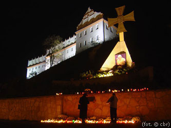 Miasta, z rozległym widokiem na dolinę Wisły, wznosi się